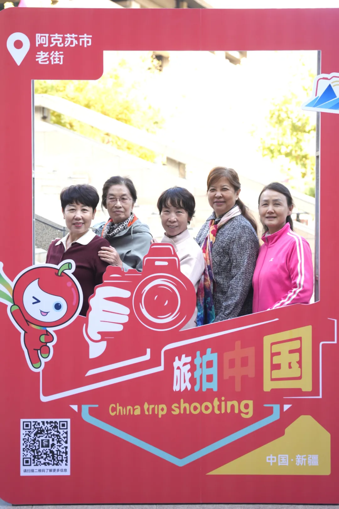 活动现场,主办方正式发布阿克苏“旅拍中国”打卡地。图为摄影爱好者与阿克苏“旅拍中国”打卡地标志合影留念。