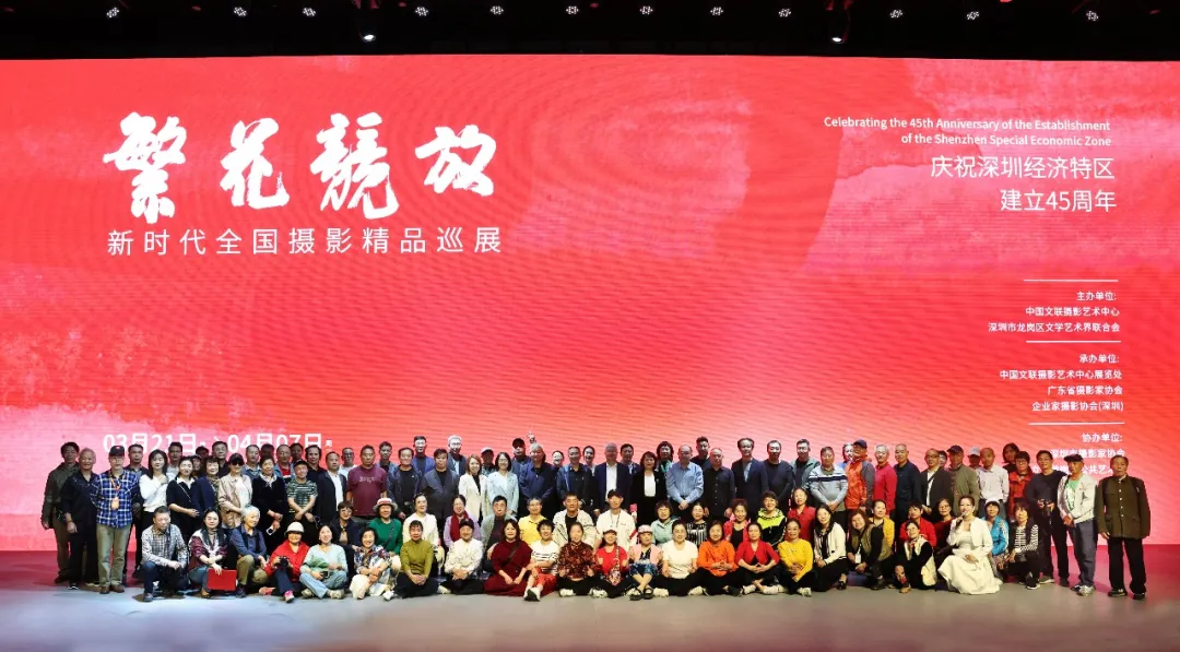 繁花竞放——新时代全国摄影精品巡展深圳龙岗站嘉宾合影。刘伯良 摄