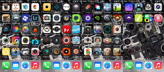 许多摄影App都可以在应用里使用照相机功能。有许多应用只是在用户允许的情况下访问照相机,没有什么过多的功能,基本上只能调个闪光灯转换摄像头按个快门。不过也有很多的应用的照相机功能更为复杂更为专业,比iPhone本身的照相机更好用。不过因为我们使用iPhone拍照大都是一时兴起或者马上拿出来拍照,不用解锁屏幕直接在屏幕右下角向上滑动一下便可以直接访问照相机,所以很少会用到每个摄影类应用里面的照相机。