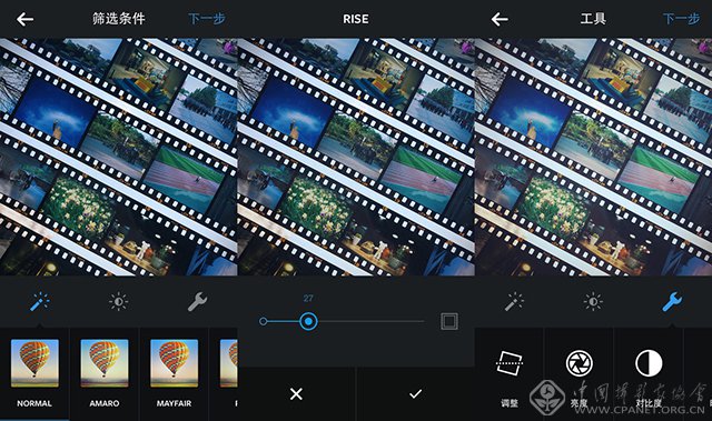 几款经典的滤镜效果(AMARO、MAYFAIR、RISE、HUDSON等)依旧没变,现在的Instagram与之前相比,新增了一些新功能,比如可以对每个滤镜效果做程度性的调整(透明度),除此以外也增加了基本参数的调整,如水平微调、亮度、对比度、锐度等等。