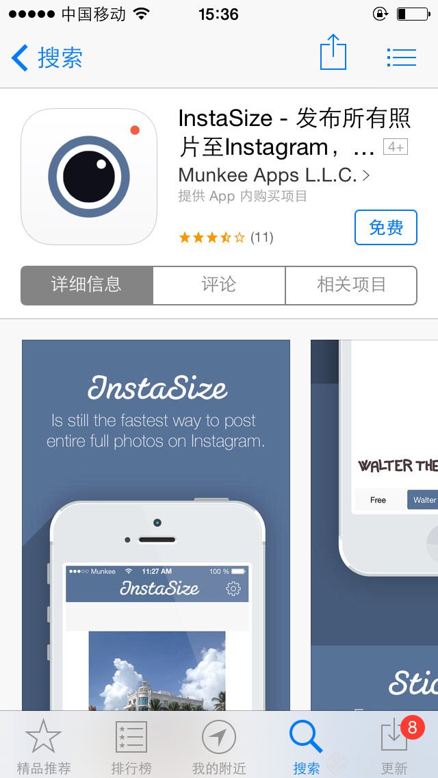 因为Instagram的成功,手机上的商城里也会有各种各样的围绕它而生的手机应用,可以弥补Instagram本身的一些不足,使得用户能够实现更多的想法。比如Squaready。