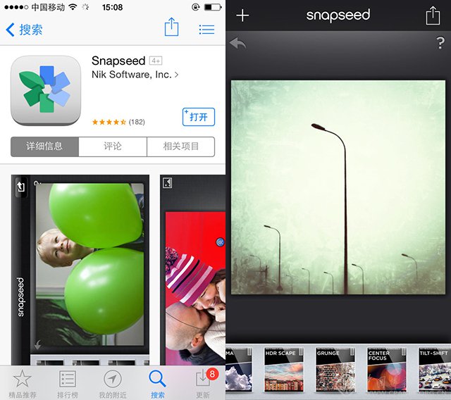由Niksoftware制作的Snapseed同样优质。有人说Snapseed是手机上的PS,个人觉得这种说法不准确,我的体会是Snaposeed是能把简便与专业兼顾的很好的一个后期应用,而且其中很多功能是独特的,使得它很难被淘汰掉。
