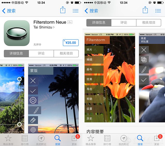 注:Filterstorm也有另一款全新升级版:Filterstorm Neue,界面设计风格与Filterstorm有许多不同,更像是完全适配了iOS7的扁平化。Neue版本支持全汉化,价格为人民币25元。