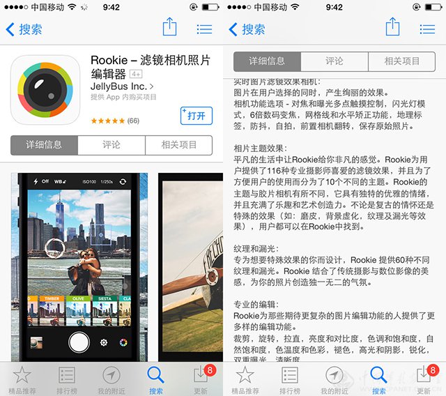 Rookie是与上述应用类似的一款综合性应用,可以使用拍照、后期,还可以添加文字、边框和贴图,功能全面,而且每一样都不弱,最重要的是操作简单,十分适合惧怕繁琐操作的同学使用,因为Rookie 十分容易上手。(虽然后面还会提到更容易上手的应用)(Rookie也有安卓的版本。)