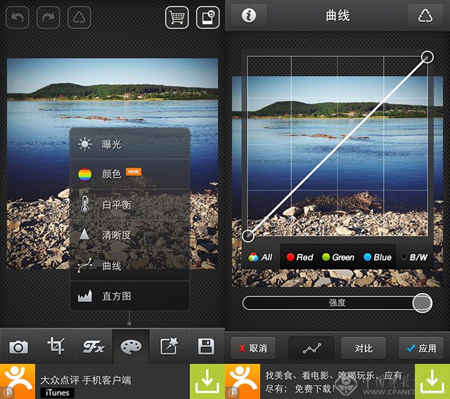 那么Picsplay是否就是最专业的呢?当然不是。也有应用更在乎专业性而不是综合性,它们也许不会有漂亮的文字添加或者贴纸神马的,但是在后期专业性质方面却可以直逼手机版PS。