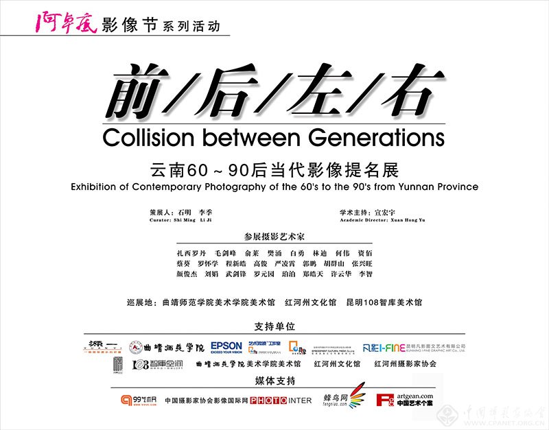 非常荣幸受石明和李季二位先生的邀请,为“‘前后左右’云南60 - 90后当代影像提名展” 撰写一篇评论文章。参加本次展览的24位摄影艺术家,年龄分布在二十几岁到五十几岁之间;在他们当中,既有我十分熟悉的,也有从未谋面的,但就作品而言,却无一陌生,这大概也是我暂时能想到的他们之间的唯一共性。当然,对于策展人来说,把许多作品放在一起展出绝不会只是因为它们已经有了一定的影响力和认可度,或者仅仅出于个人好恶。正如展览前言中已经言明的那样, 这些摄影艺术家之所以会聚于此,乃是因为他们都“ 是同在一个大的社会背景下,用自己独立的视角,独立的思考,诠释着自己的一种创作理念。”