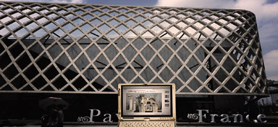 第二部分:在《十二生肖》系列、《万国园记》系列作品中,艺术家本人则更加精准地转向于对历史与“再历史”事件的回应、反思与对话。在《十二生肖》系列作品中,以佳士得2009年“伊夫·圣罗兰与皮埃尔·贝杰珍藏”专场拍卖事件为线索,通过艺术的手段对当下事件的回应,并将其置入一个更深广的历史中去对它进行反思。艺术家将惨遭祸乱的圆明园遗址与身在拍卖场的“鼠首”、“兔首”及其余十大兽首作为创作主题,借用笔记本电脑检索的手段“索回”十二生肖。试图让这十二个生肖各归其位回到它们原来的位置,去构成一个看似客观又毫无新意的事实。通过这种历史、事件概念的回应与置换,将最具有历史悲剧色彩的这组词汇拉入到当代的全球化景观中,即主动、主观地与西方诸国家进行对话。《万国园记》系列与《十二生肖》系列一脉相承,在《万国园记》系列作品中,艺术家将圆明园废墟置换成2010上海世博中的英、法、德、日、意、奥、美、俄等国家馆的场景,并把电脑中的图像置换为圆明园的颓垣断壁。圆明园成为历史,上海世博会成为历史,《万国园记》与《十二生肖》的承载也将成为历史。历史总是活在过去、现在和未来之间。傅文俊的这批影像很有视觉感,切入到新的视觉角度———解构、置换、重组,有很突出的效果。