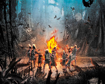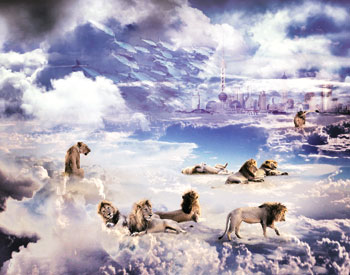 第五部分:在《图腾》系列、《故乡的云》系列中,我们能够看见“傅氏文化身份”的索源与回归。两组作品运用了同样的艺术语言与表现方式,对摄影艺术的多媒体跨界是两组作品的共同特点。艺术是文化的重要组成部分,傅文俊作为一个有强烈爱国情怀及责任感的艺术家,通过对西方文化的当代解读及寻根索源,通过创作,树立自己的文化身份,更多地是为世界人民提供各自对文化、文化身份的思考。