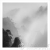 青山叠翠、薄雾轻绕、涧中瀑飞,