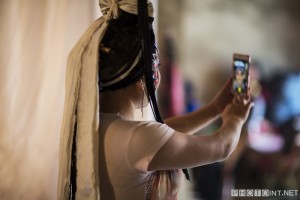 四川德阳在戏台后台等待的旦角演员严玉环。