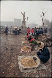 过去,在70、80年代,我们看到的是板车,自行车,露天的农贸市场。90年代,照片中是古旧的胡同和公交车站。今天,我们看到的是一个市民休闲广场,在地下是一个大型停车场,旁边有花坛,在适合的季节里,百姓夜生活也很丰富多彩。建筑更高了。交通更密集了,行人在SUV,摩托车和多彩的公交车之间穿行。高档餐厅,快餐店,美发店和霓虹灯构筑了一幅新的城市景观。