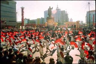 从1985年开始,陈志贤用32年记录晋城,手中的相机从胶片到数码,影像从黑白到彩色……在这32年里,陈志贤每年不仅一次从上海或者温州来到晋城。记忆中,他在这里度过了12个春节,5个元宵节还有3个中秋节。每次他来到这里,去的最多的地方就是人民广场。他选择广场上那个最具代表性的符号作为影像记录的主题。在他的镜头下,不变的雕像与跟随时代亦步亦趋的平凡生活形成鲜明对比。或许照片的主体并不是雕像,也非雕像下的人群,而是沧桑巨变中的时代本身。