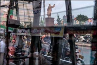 集体记忆、毛泽东雕像、人民广场三者共同建构了一个有关特定时代的话语回溯,当然这也是陈志贤照片之所以能够引起观者共鸣的触发点所在。然而,对于绝大多数中国人而言,这并非美好的桃花源式的追思过往,而是对一段承载着癫狂、愚昧、创伤、暴力、鲜血的记忆的某种无法直面的回忆。一方面伴随商业洪流席卷而来的消费文化迅速消解了原有的集体认同,传统的意识形态控制迅速让位于资本操控;另一方面,作为权力象征的符号价值系统依然凭借政治力量维系着自身的统治。这种交织着权力与资本的双重塑形被陈志贤的影像巧妙地记录下来。在他的镜头下,那个不愿退出历史舞台的雕像,与那些平凡得不能再平凡的生活景象形成了鲜明的对比。没有永恒不变的神话,唯有万古不变的生活。