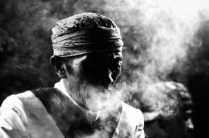 这些照片也不试图让自己成为民族志。从巴厘岛到腾格里岛和Parangtritis,Zakaria在生命的洪流中记录下人们的状态。渔民和农民们在征服海洋与陆地的过程中努力谋生,街头小贩、苏丹仆人和地方宗教领袖的日常生活,在海中祈祷,举行净化仪式的男男女女,都以身处其中的参与者的视角呈现,而非成为他者或是异域情调的主体。 因此,仪式以及事件本身都不是显而易见的。对Zakaria来说,镜头所捕捉到的东西与他的感性认识保持绝对一致,而非他的理性认识,正是这样的品质让他在印度尼西亚的纪实摄影师中独树一帜。