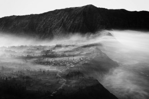 虽然拍摄的对象是山脉和海洋,Zakaria的照片却不是地理特征的单纯展现,它们主要是关于向山脉和大海表达崇敬的仪式,因为这些仪式所崇敬的守护神在外国人眼中正是这片土地的神奇之处。这些对仪式的描述不应该是传统意义上的事件记录。 它们由一系列独立的时刻组成,这些时刻与主题有着看似松散的联系,一起讲述着关于地方和人民的故事。这些时刻包括一些微小的事件,潮湿的沙地里隐藏的细节,人们的日常生活,一些特殊的场合,或只是记录下天气的变化,云、雾、细雨,都成为独立的对象,最终组成印度尼西亚的印象图景。