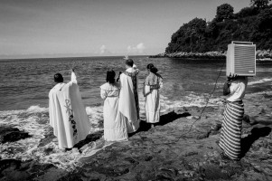 Rony Zakaria在一个传统新闻摄影和纪实摄影衰落的大众媒体时代成长为一名摄影师,他的作品一直保持着乌托邦的假想和浪漫的光晕。“人,山脉和海洋”这组作品不同于关于他的国家地理景观最俗套泛滥的咖啡桌风格的照片,这组作品的创作逻辑很简单:在形态上和概念上让150余个活火山和80000公里的海岸线同拥有它们的国家、居住在其中的人们相联系。海洋和山脉是大多数古老文明的神圣遗址。 对许多仪式迷信信念的现代分析已经证明了这些观念背后有一定的理性:尊重自然。