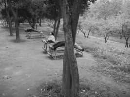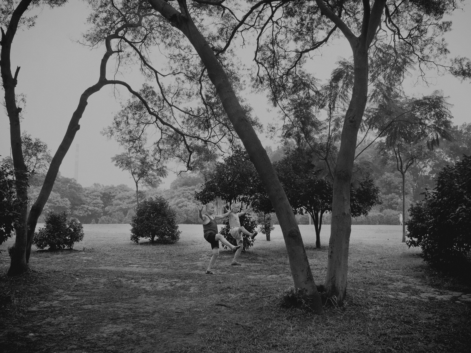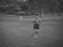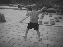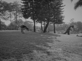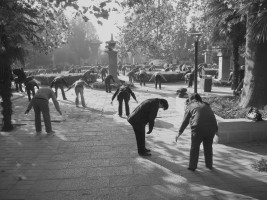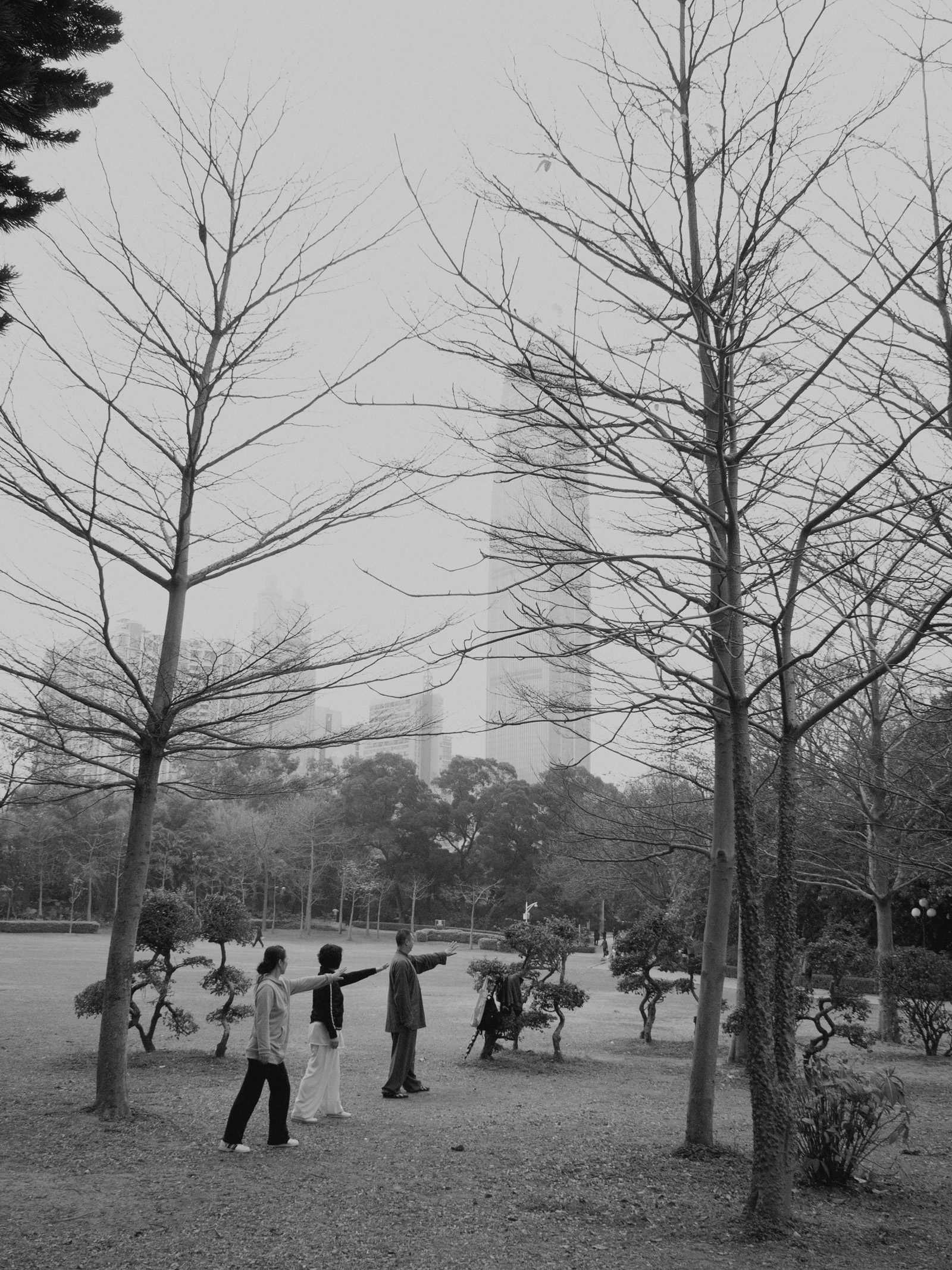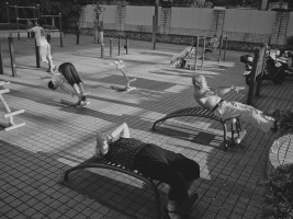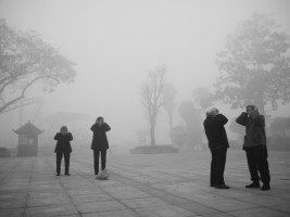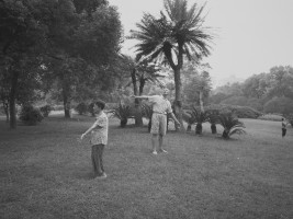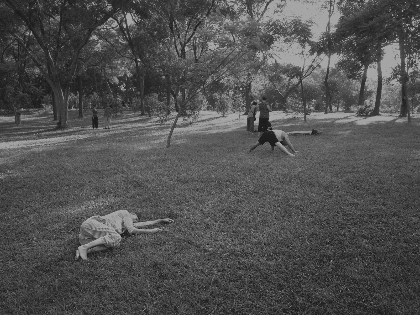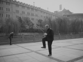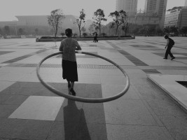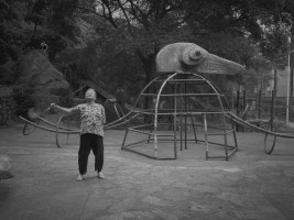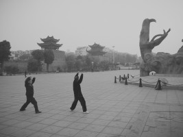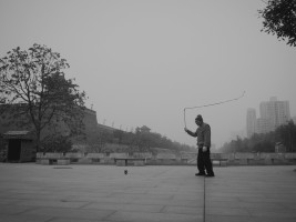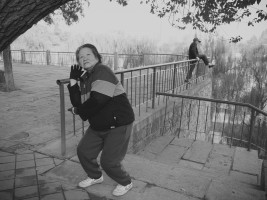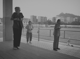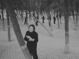 贺肖华的这组题为“逍遥”的画面,来自日常生活,主要是一些晨练的对象,构成了当下中国很有趣的景观。也许一上来面对这些画面,所有习惯了一出生就被好大喜功的宣传图片熏染的人,肯定会有不自在的感觉。或者说,这些画面中隐藏着某种诡异,散发着荒诞的气息,但确确实实又是从日常生活中提炼出来的故事。不是吗,这里面有的人在徜徉,呈现出缓步行走貌;这里面也有悠游自得的安闲自在;当然,肯定不会缺少一种徘徊不进的彷徨感;于是,平添了许多斟酌玩味的可能——这不就是百度百科中关于“逍遥”的全部解释吗?