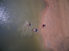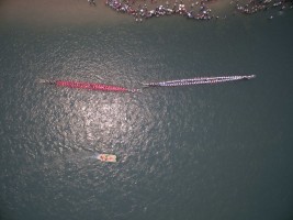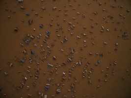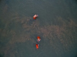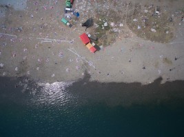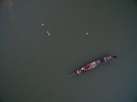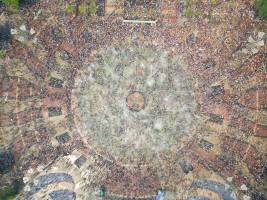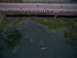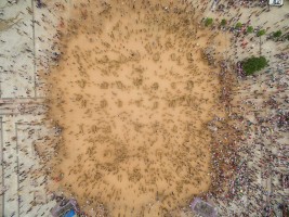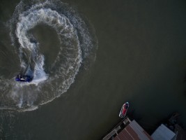 有人说航拍视角是上帝之眼,我想要是真有上帝,那他肯定是高于我们所处的维度而存在。从无人机传输的影像中我看见了劳作、嬉水、狂欢和群舞的人群,也看见了人类建造的古迹,栖身的居所,运输的轮船。抛开我所有理性的认知,我仅从维度空间来思考,在展开的二维平面上它们仅是些不同形状的图案。正如我拍摄时的感受一样,我听不见河流的咆哮,马达的轰鸣,人群的欢笑,甚至听不见祈祷的声音。如果造物主也同样在高维度中看我们的世界,会不会是一切都是像我们所看到的二维世界一样呢?河流、房舍、轮船和所有人类的行为。在他眼里是不是也仅是些低维空间的不同形状的图案呢?会不会也一切都失去了声响,正如这条河流在宁静的流淌,时间在安静的流逝一样。