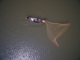 12-2016年3月拍摄于柬埔寨暹粒——在吴哥窟护城河里捕鱼的高棉人
