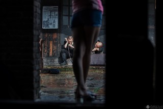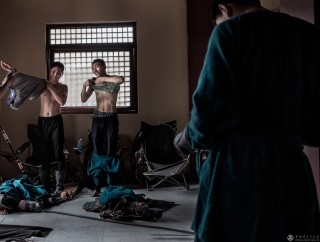 在现实环境里,比如周晓刚镜头里的横店影视基地,情况稍有不同,只有一种人:意识到自己在演戏,把戏尽可能地演得像模像样。周晓刚掀开了连台本戏的帷幕一角,各种各样的意愿、冲动、想法、行为,各种各样的扮相、角色、身份、类型,过去和当下,虚拟和真实,干涸和鲜活,纠缠错综在一起,不断复制,坚硬混沌。但周晓刚所映照、所指涉的,并不仅限于漂在横店的人群,且始终处于巨大的、未定的生长之中。(姜纬)