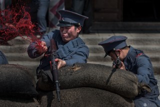 惊险、刺激、危险对他们来说就是一份工作,抹血可以加10元一天,涂脸又可以加10元。