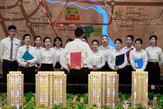 售楼公司为了促销,不定期会举办一些优惠活动,每名售楼员都会邀请新老客户来现场,邀请客户的多少,计入员工的考核指标,售楼员正带领客户签到登记。