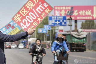 路边摆满了各种广告牌,这些人有的根本就不属于哪一个售楼公司,有的就是当地农民或是小商贩,也看到了这里的商机,他们只是负责联系客户,然后推荐给正式的售楼员,赚取介绍费。