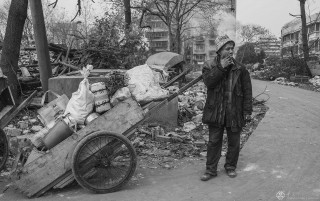 就在曾三四处奔忙他的业务时,他所居住的地方已悄然进入拆迁的日程,曾三全部的家当瞬间被掩埋进废墟里。我看着他顶着满头白发,钻过倒塌树木的缝隙中,一点一点地将他的物品清理出来,再用他帮很多人家搬过家的板车,把这些东西拖运到他下一个暂住点。