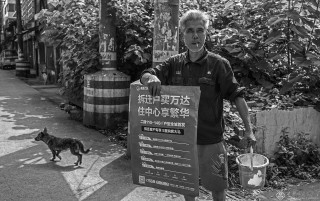 有一天,这条路上多了几块写着粉笔字的木板,有的写着“搬家的常识与经验教训”的温馨分享,有的写着“瓜田李下,自避疑心”的善意提醒。这样带着善意的新变化,让已被拆得七零八落的平政路有了一丝别样的温暖。于是,书写这些文字的人就此走进了我的镜头,这便是曾三。