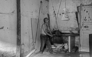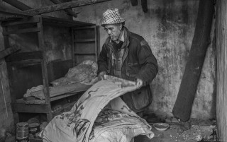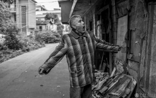 他端着白瓷碗非常享受地嗦着面条的样子,他拿着剪刀细细修剪他浓密间白胡须的样子,他在废墟里收捡衣服被子的样子,他在自制健身房里煞有介事锻炼的样子……都一一存在了我的镜头里,被定格成永恒的模样,证明他曾在平政路的那些岁月的点滴。