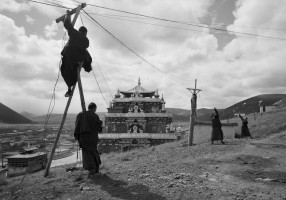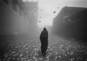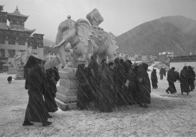 22.法会上被冰雹袭击的僧侣们 四川 2015_