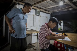 今年63岁的黄宏波(右),是北岛海龟保护站的负责人。年轻时是捕海龟挣工分,如今是每天巡逻保护海龟,自1967年上岛以来,他与海龟打了近半辈子的交道,结下了半个世纪的情缘。上世界90年代后,海龟被列为国家保护动物,黄宏波的工作之一,就转换成了保护它们。