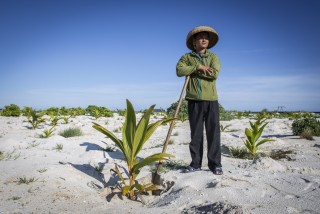 赵述岛渔民梁昌健,是最早一批到西沙洲植树的。由于缺土少水,最初渔民们只能靠渔船把淡水拖上岸。