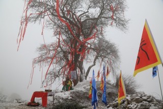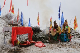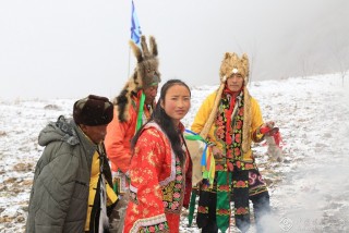 上午10时,雪停了,祥云缭绕,负责主持祭祀庆典活动的“释比”穿戴好祭祀法衣,净身焚香。
