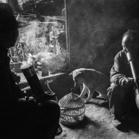 用牛粪生火取暖的牧民 拍摄地:云南昭通(2015年)