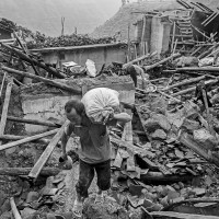“803”地震后在废墟抢救物品 拍摄地:云南纸厂乡(2014年)