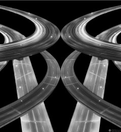 新唐山是大地震后建设起来的新城,环城高速公路建设的非常好。我站在几十米高的消防车上,高角度拍摄了唐山的高速公路,在我的想象中,高速公路就像一位少女,轻盈舞动,飞跃时空。经过我的“无限想象”,我把拍摄的高速公路素材进行整合,想象构思出新的画面,经过电脑制作成为一组《世纪歌舞》作品,2002年获得第20届全国影展银牌奖。