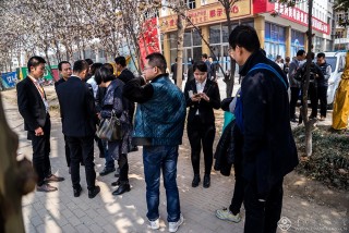 一些不甘心的购房者仍在售楼处门口徘徊,他们希望能从售楼人员那里打听到最新的房屋资源。