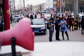 4月5日早上,一家来自深圳的媒体记者正在容城街头做直播。