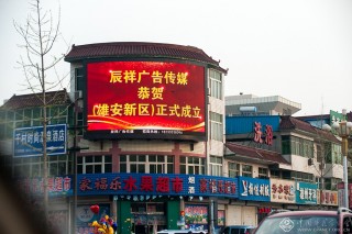 雄县雄州路上一处恭祝雄安新区成立的广告牌。连日来,随着新区的成立,当地居民在兴奋激动之余,也开始并适应着这些改变。