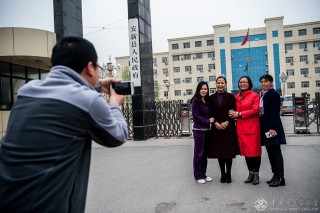 4月4日早上,安新县,纳入河北雄安新区后,安新县委县政府大院成清明假期热门景点,不少游客和本地人带着亲朋好友来到县政府的牌匾前合影留念。