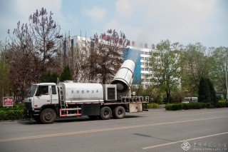 多功能抑尘车经过容城县政府门前的马路。容城县作为中国北方服装及辅料集散地,有数十家的服装企业,新区成立后,容城县的发展也将迎来新的机遇。
