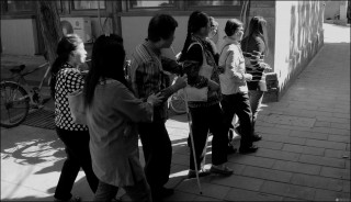 当天的“讲电影”结束了,盲人朋友们相互搀扶着尽兴而去。
