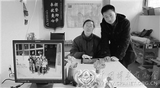 陆老师行前向小赵老师叮嘱着大事小事。他们办公桌上那台捐赠来的电脑首页上,是陆老师两年前来时为学生们拍的第一张照片。