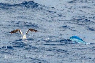 近日,在我国南海的西沙群岛海域进行影像采集的《中国岛屿影像志》项目团队拍摄到名不见经传的鲯鳅(qi qiu),它曾出现在《老人与海》的精彩故事里。这也是国内首次在拍到鲯鳅的清晰影像,不同于以往拍到的模糊的水下影像,这条半米多长的鲯鳅雌鱼利用自己的高达50多公里的游速“飞”出水面,如同一道蓝色闪电。它异常美丽的体色和奇特的体型令人叹为观止,它正和一只红脚鲣鸟同时捕猎飞鱼。这种体色只有在它们鲜活的时候才能显现,一旦被捕捞上岸,不久后就会变成黯淡的铁灰色。鲯鳅的体色并不来自于体表的色素细胞,而是源于能够反射光线的鱼鳞,这些立体的交织的小鳞片受神经系统控制,能根据机体的兴奋程度进行调节,捕捉和反射来自不同角度的光线,就像一面面小棱镜一样,所以鲯鳅能闪烁着彩虹般的光芒,这是生命的光芒。自然生态摄影正是要用影像的方式展现地球上众多生物的神奇生命力。