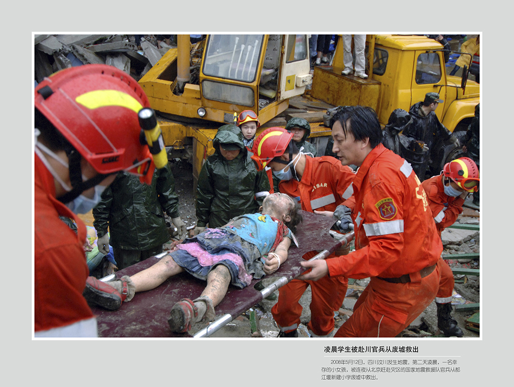 凌晨学生被赴川官兵从废墟救出。李靖摄