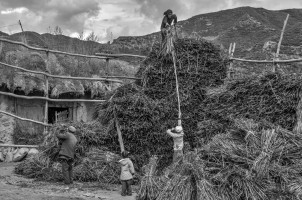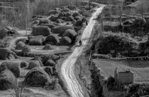 2011年3月6日拍摄于甘肃省礼县上坪乡。去往上坪乡弯弯曲曲的土路两旁,时常会看到摞着一堆堆的麦秸垛,大小不一,见证着耕耘的收获。