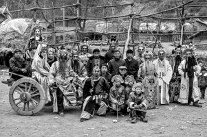 2014年2月4日拍摄于甘肃省礼县上坪乡苏其沟。在木轱辘车地域各村文化活动较少,但上坪乡的苏其沟村每年在正月里,都要组织村上自乐班热热闹闹唱上几天大戏,方才觉得年过得有滋有味。自乐班演完戏后集体合影。