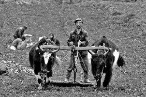 2012年9月28日拍摄于甘肃省礼县上坪乡下草坪村。赶牛磨地的汉子,人与牛在饱含悲喜哀乐的土地上抒写出顶天立地的“人”。
