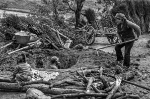 2011年10月4日拍摄于甘肃省宕昌县兴化乡磑子坝。收洋芋时庄户人都要提前整理藏窖,不行的话就要重新建。蒋董董的丈夫李尕五在外打工,她便请来本村的隆干猫帮助整理藏窖。